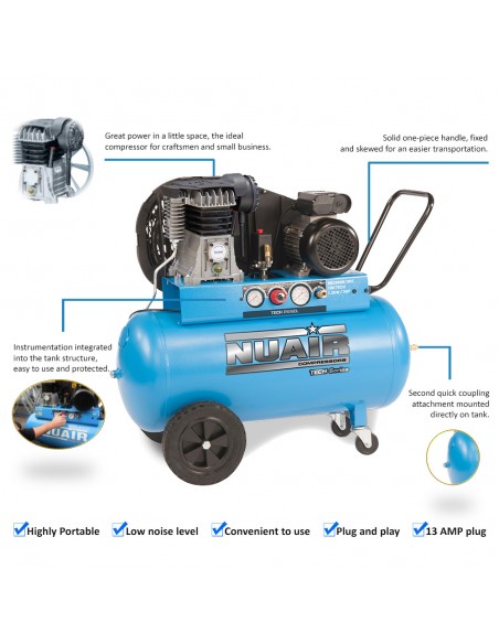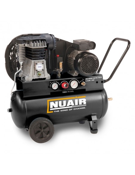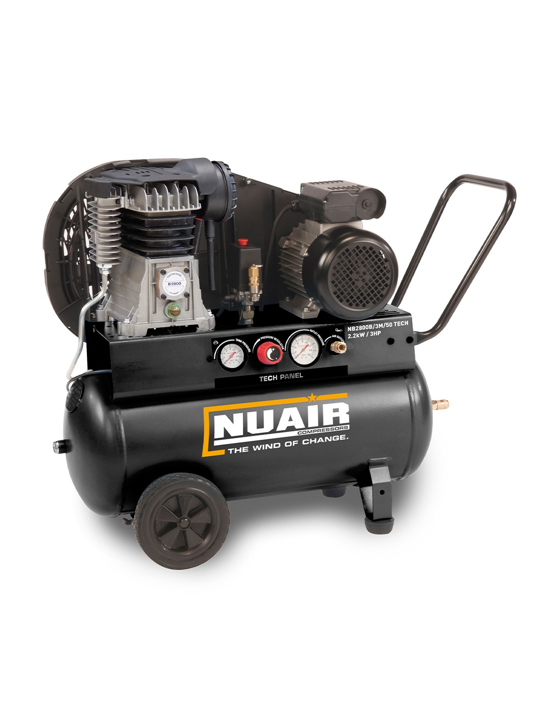 The NUAIR range of TECH PRO series compressors have been designed to offer maximum user comfort in terms of ease of use, simple controls, portability, conveniences and lower noise levels. Available as Direct Drive or Belt Driven variants features include: